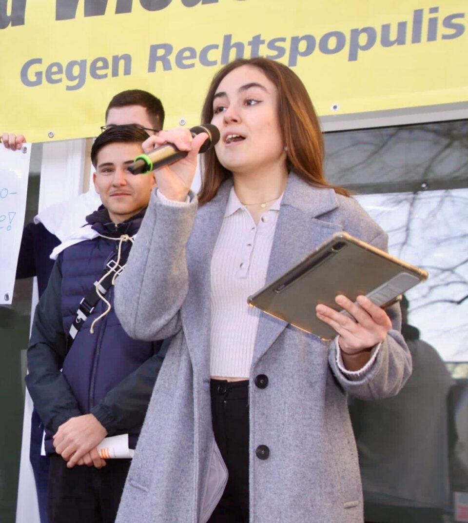 Als Schule ohne Rassismus hat die MFG auf der großen Kundgebung für Demokratie und Menschenrechte mit 4000 TeilnehmerInnen am 28.01.2024 in Rheda-Wiedenbrück Flagge gezeigt. Unsere Schülersprecherin Carolina Vaz Novo Silvestre hat eine bewegende Rede für unsere kulturelle Vielfalt, die Menschenrechte und über die Bedeutung des Wahlrechts in der Demokratie gehalten. Denkt daran: An der Europawahl…
