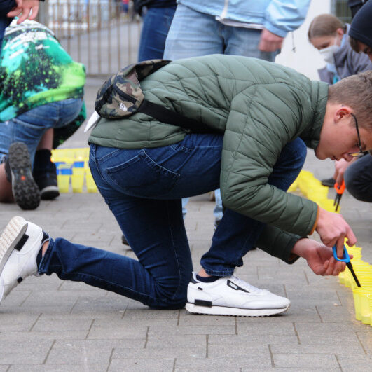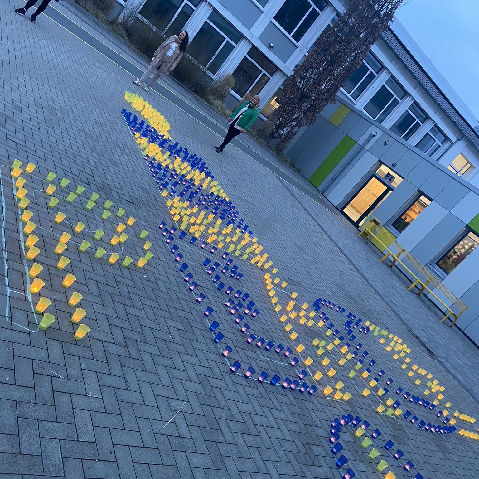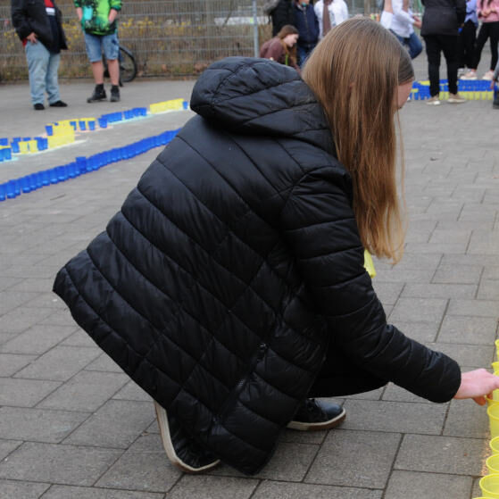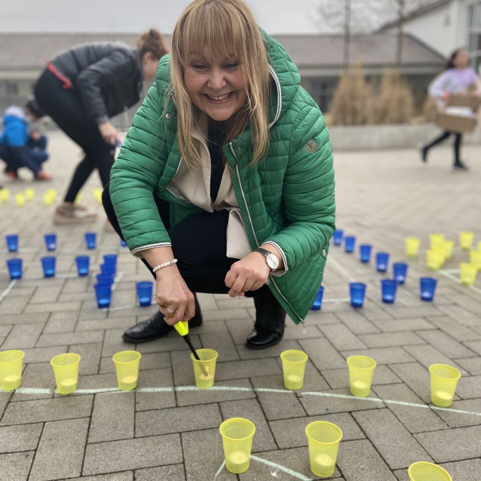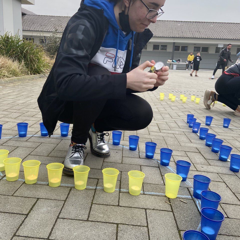 Am Mittwoch, den 16.03.22, haben wir an der Aktion „Mein Licht für Frieden“ der weiterführenden Schulen teilgenommen. Jede Schule hat pro Schülerinnen und Schüler ein Licht aufgestellt. Ab zwei Standorten hat die SV mit jeweils 30 Schülerinnen und Schülern der Sekundarstufe 1 sowie Lehrkräften, Eltern und Oberstufe. Aus den Kerzen legten unsere fleißigen Helferinnen und Helfen eine Kerze als Licht für den Frieden und schmückten diese mit Friedensschriftzügen. Drohnen, geflogen von Schülern von uns, haben diese Aktion abgerundet. Vielen Dank an alle, die dazu beigetragen zu haben, ein Zeichen für den Frieden von unserer Schule zu setzen.