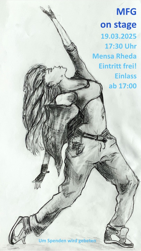 Hiermit möchten wir Sie herzlich zum Kulturabend „MFG on stage“ der Moritz-Fontaine-Gesamtschule am 19. März 2025 um 17:30 Uhr in die Mensa am Standort Rheda einladen. Einlass ist ab 17:00 Uhr!