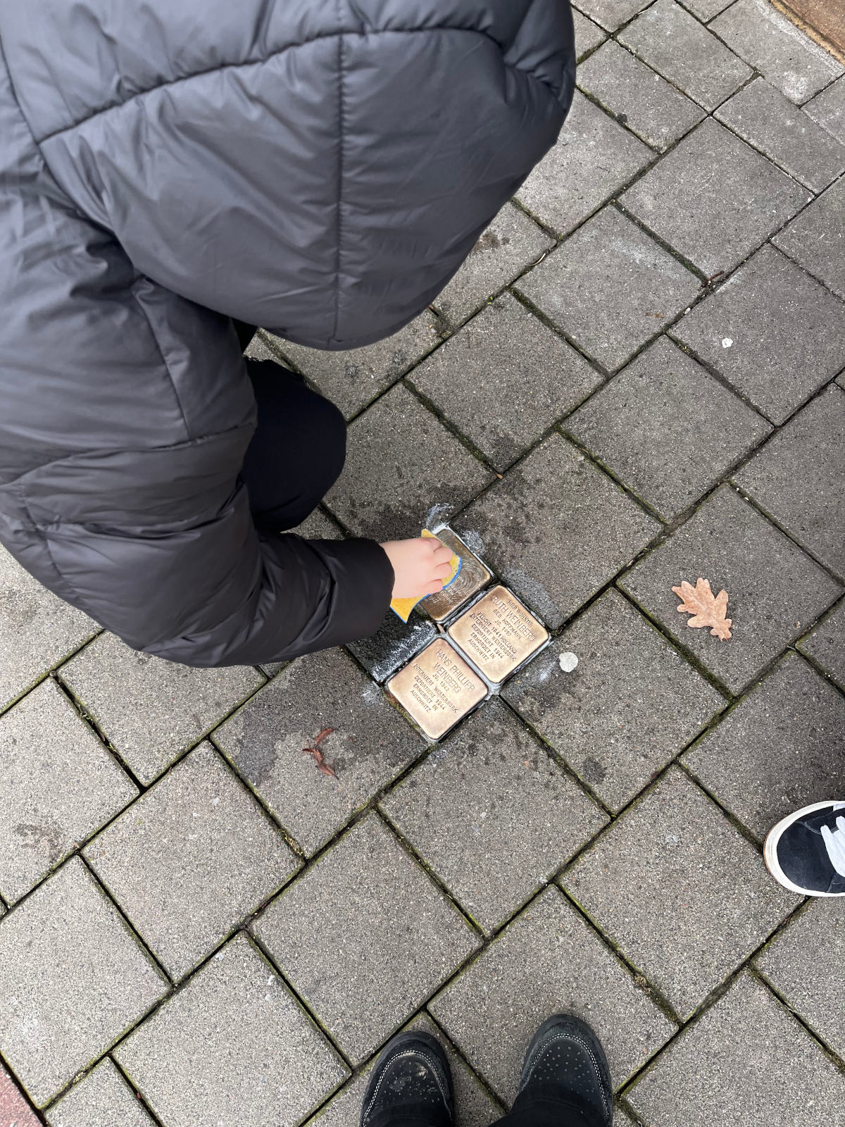 Als wir uns auf den Gehweg gekniet haben, um die Stolpersteine zu putzen, war das zuerst ein komisches Gefühl. Auch Passanten haben uns vorerst etwas verwundert nachgeschaut, davon haben dir uns aber nicht abhalten lassen.